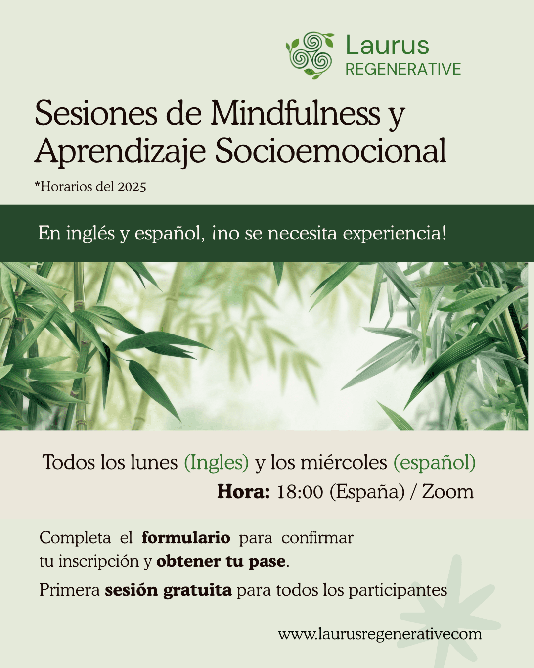 These sessions are designed for people with or without previous experience who wish to improve their emotional balance, connect with others, and practice mindfulness in English or Spanish.